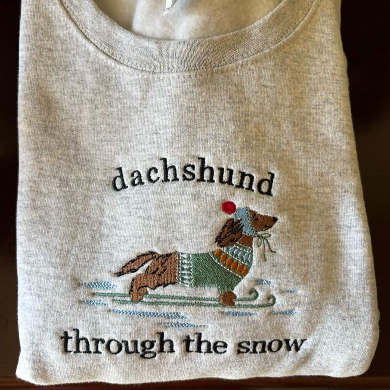 Jerzees Dachshund Through the Snow Embroidered Sweatshirt